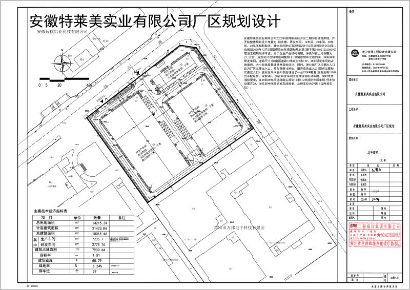 1、因企业产业结构调整,厂区占地面积由50亩调整为21.32亩,2#、3#生产车间及研发车间的占地面积、建筑面积、高度等均遵循原规划设计。