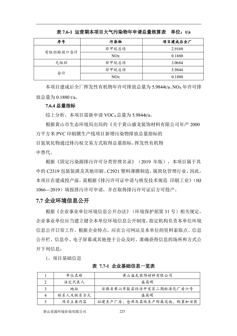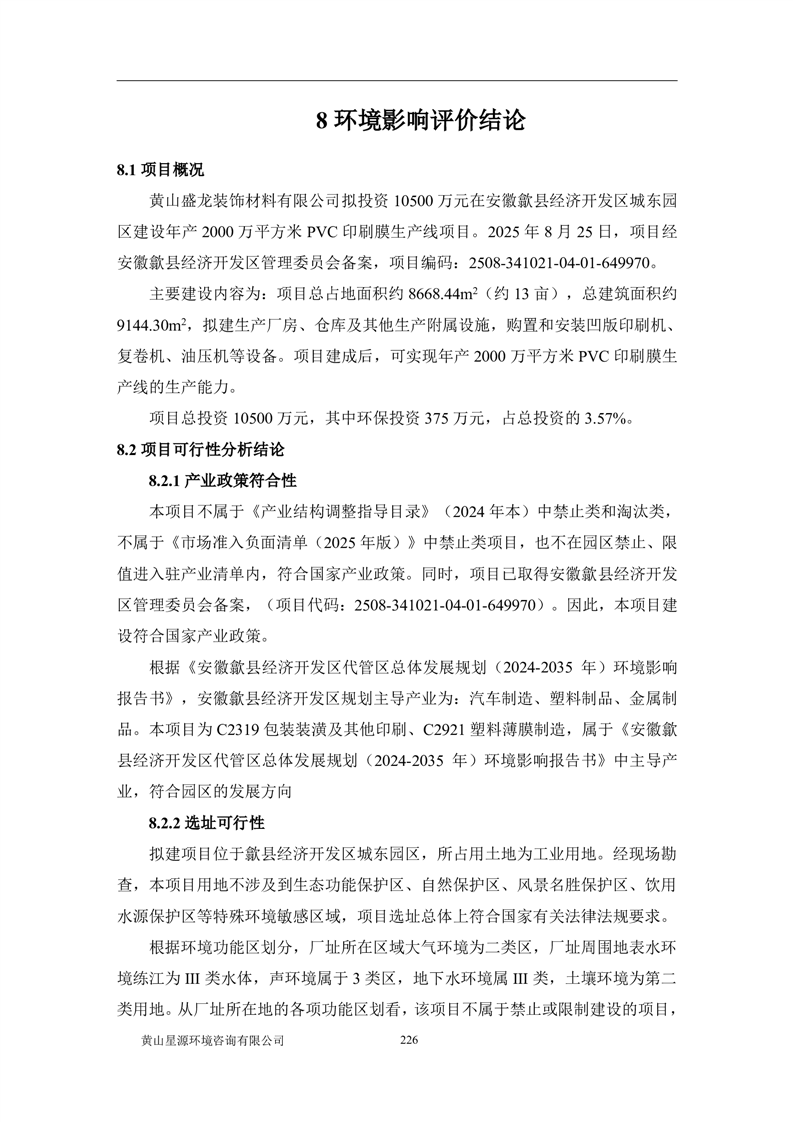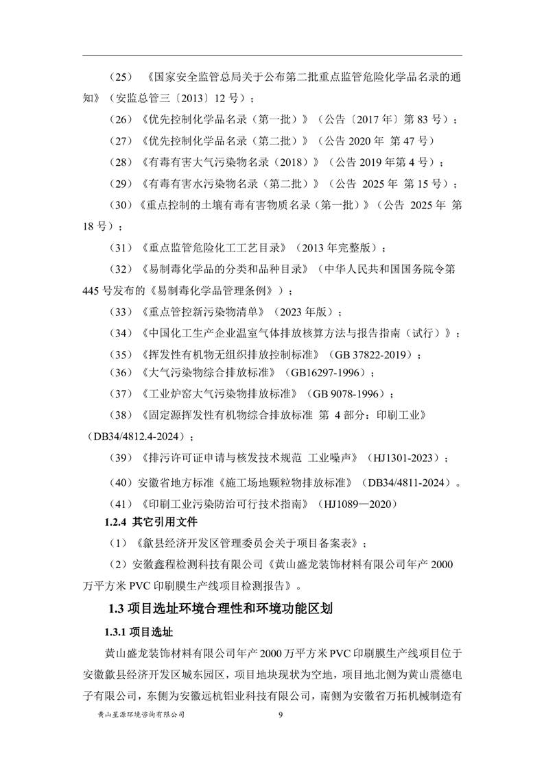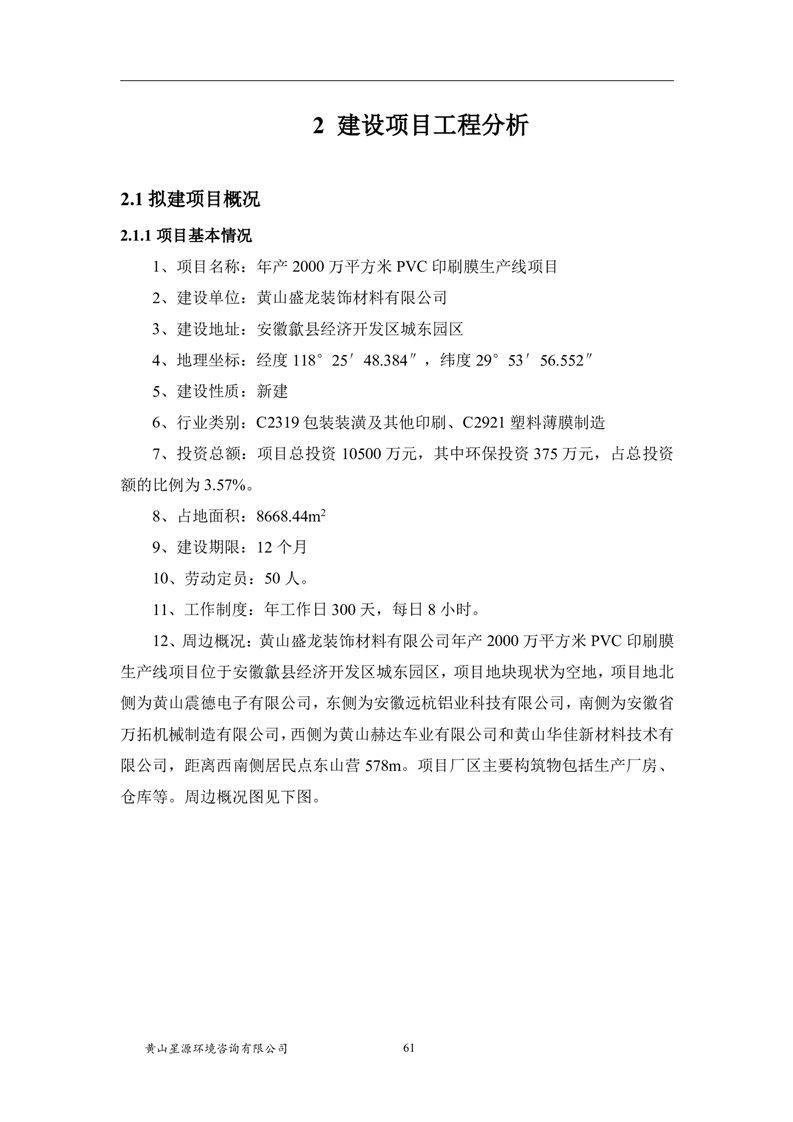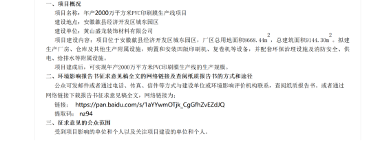 黄山盛龙装饰材料有限公司年产2000万平方米PVC印刷膜生产线项目