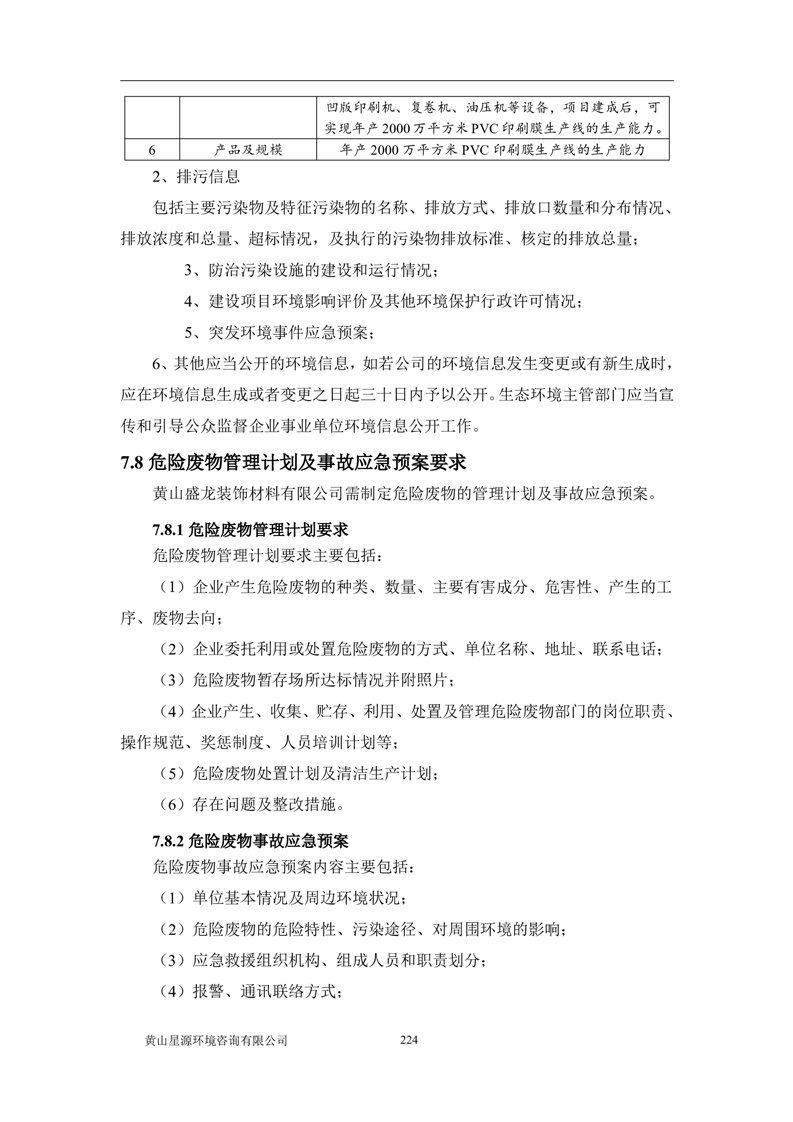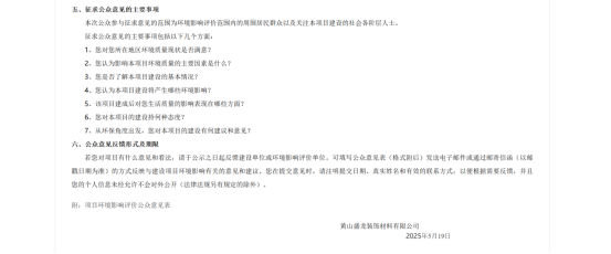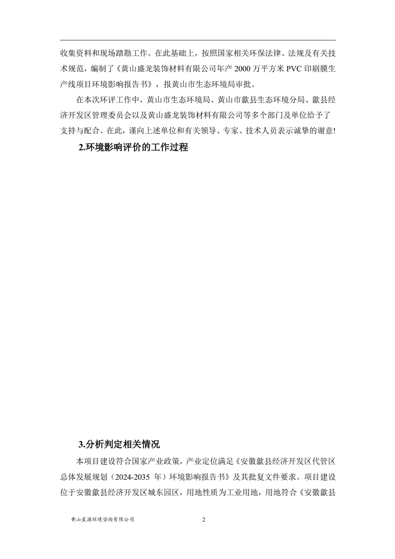 我单位已按照《环境影响评价公众参与办法》(部令第4 号)要求,在黄山盛龙装饰材料有限公司年产2000万平方米PVC印刷膜生产线项目环境影响报告书编制阶段开展了公众参与工作,并按照要求编制了公众参与说明。