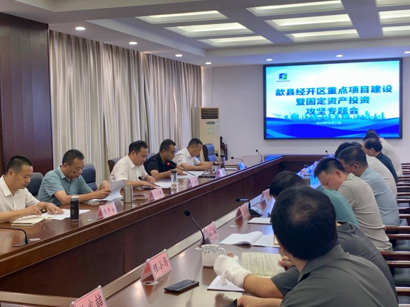 8月22日,县委常委、经开区党工委书记王坤主持召开2024年度重点项目建设暨固定资产投资攻坚专题会,经开区党工委班子成员,管委会各部门主要负责同志及经济发展局、招商中心和统计中心全体职员参会。
